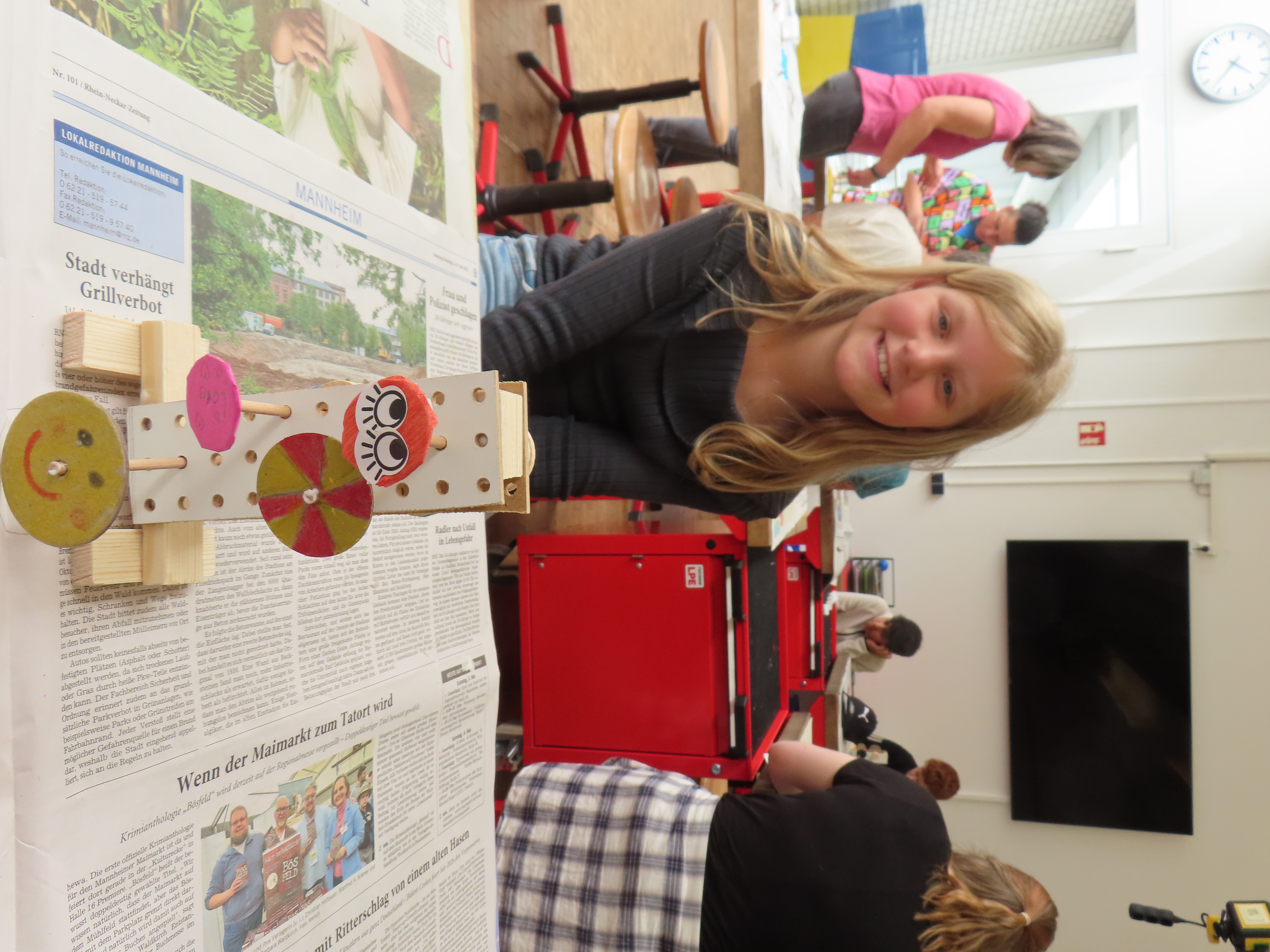 Am Freitag, den 30. Mai fuhren wir, eine Gruppe aus rund 20 Kindern der Klassenstufen 5 bis 7, nach Mannheim. Wir besuchten dort das Technoseum. Im Technoseum konnten wir zuerst eine Ausstellung besuchen, die viele verschiedene Mitmachstationen rund um die Themen Natur und Technik anbot. Anschließend nahmen wir an einem Workshop mit dem Titel „Bewegte Kunst“ teil. Dort konnte jede/r ein eigenes Werkstück herstellen und gestalten, um es nach der Fertigstellung mit nach Hause zunehmen. Dabei musste Holz ausgemessen, gesägt und geleimt werden. Zudem wurden Zahnräder montiert, die selbstgestaltete Kreise in Bewegung setzten. Danke an unsere FSJ-Kraft Jessica Mertke, die uns an diesem Ausflugstag begleitete.