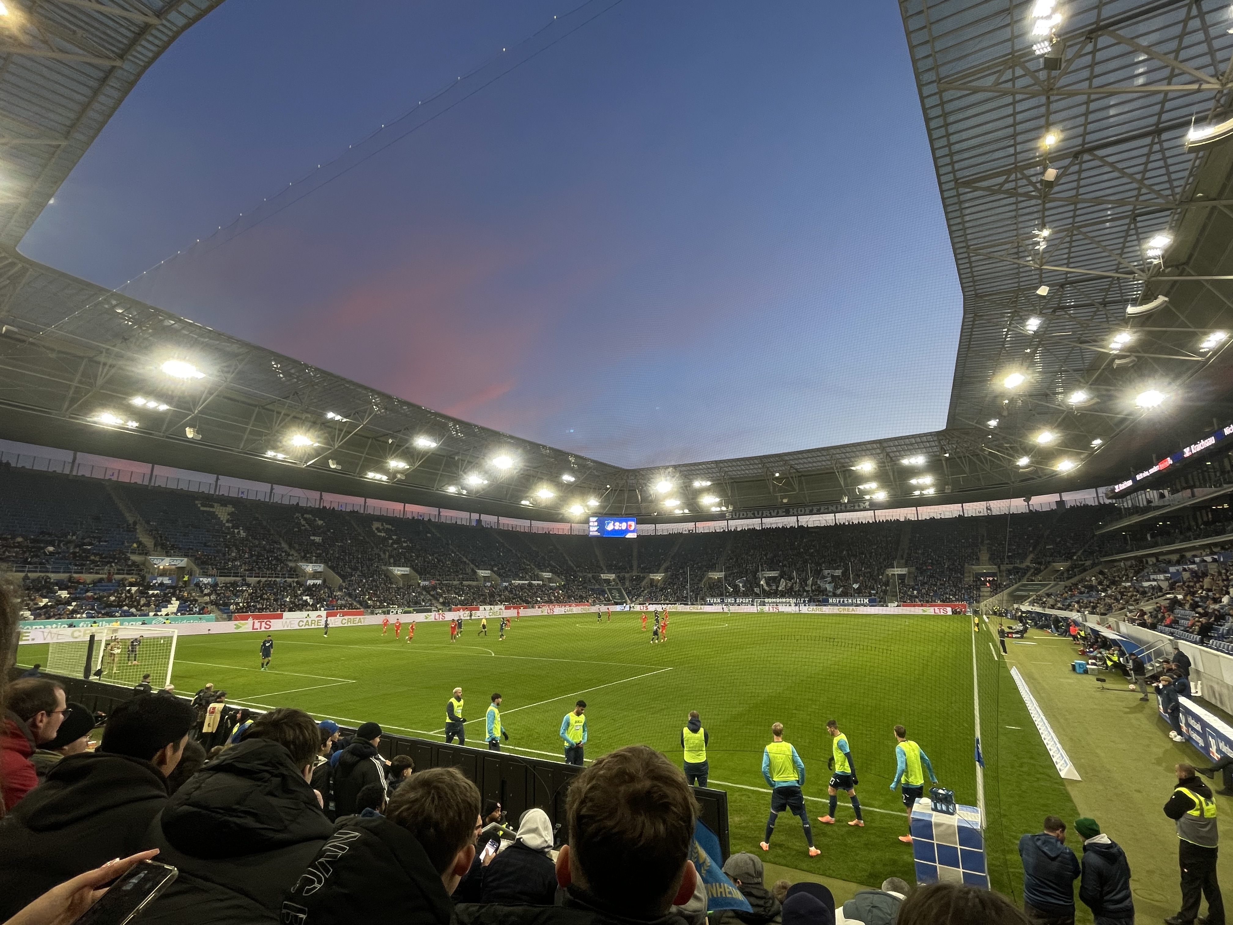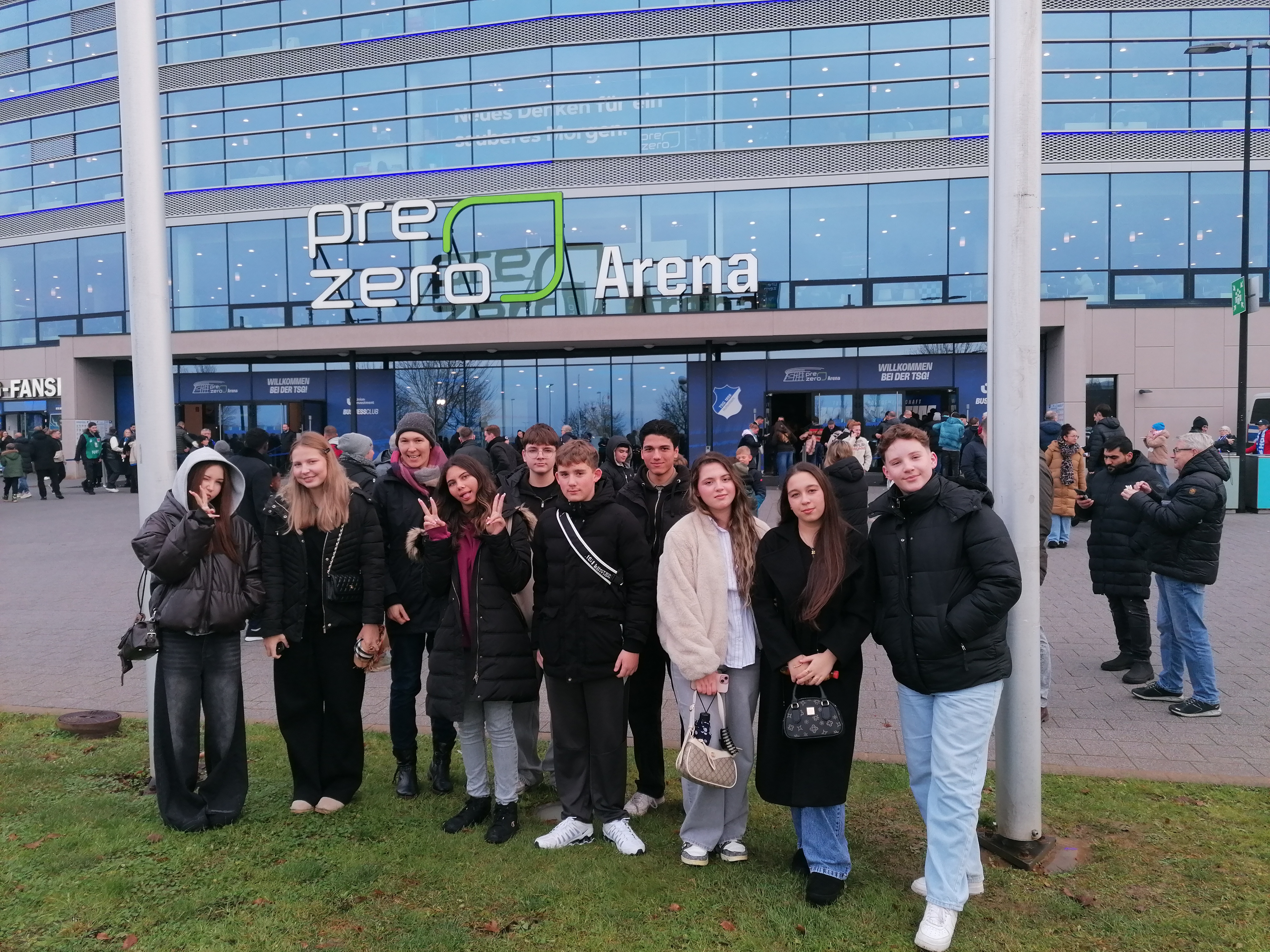 Ende November war es wieder soweit. Eine kleine fußballbegeisterte Gruppe von Neunt- und Zehntklässler*innen besuchte mit den Lehrkräften Ansgar Sperrfechter und Tanja Krämer das Bundesligaspiel der TSG Hoffenheim gegen den FC Augsburg. Die Stimmung im Stadion und das attraktive Spiel mit dem Endergebnis 3:0 für die Heimmannschaft begeisterten uns sehr. Das war für uns auch Grund genug, dass wir uns am 14. Februar erneut auf den Weg ins Sinsheimer Stadion machten, diesmal waren auch einige Siebtklässler*innen und unsere Schulsozialarbeiterin Kristina Doujak dabei. Bei klirrender Kälte erlebten wir die Begegnung der TSG Hoffenheim gegen den SC Freiburg. Auch dieses Spiel endete 3:0 für die TSG. Wir freuen uns schon jetzt auf den nächsten Stadionbesuch im Rahmen der Aktion „Tag der Schulen“, bei dem wir die Mannschaft der TSG Hoffenheim wieder kräftig anfeuern werden.